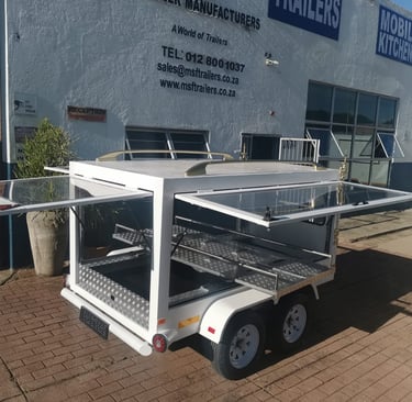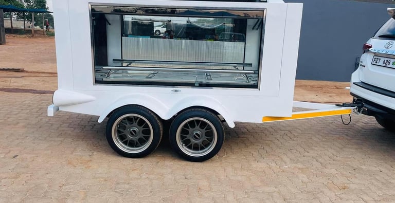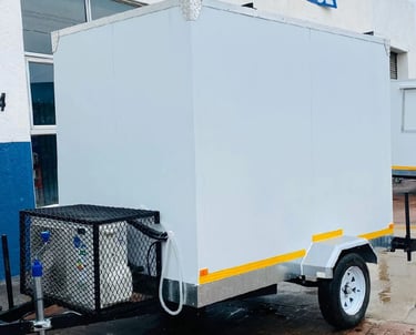 A 4m mobile kitchen trailer for convenient, on-the-go food preparation and service.
