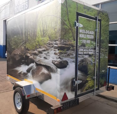 A 2.5m mobile freezer trailer for quick, mobile cold storage.